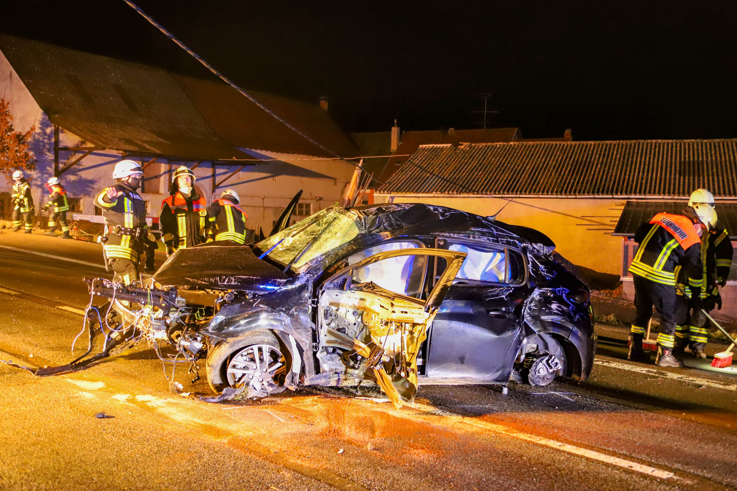 Fahranfänger prallt gegen Straßenlaterne und Strommast – fünf Verletzte bei nächtlichem Unfall