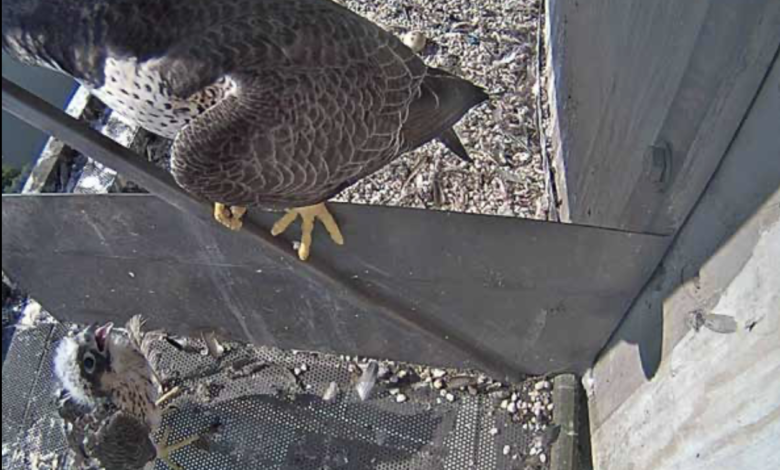 Feuerwehr rettet Jungfalken und bringt ihn zu Mama und Papa zurück