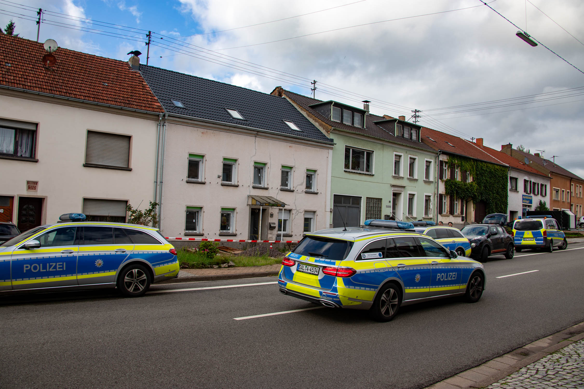 Weil zunächst nicht ausgeschlossen werden kann, dass jemand versucht hat, den 42-Jährigen umzubringen, rückt die Polizei mit starken Kräften vor Ort an. Vier Kommandos umstellen das Haus. Die Beamten sperren den Bereich vor dem Gebäude mit Flatterband ab, weil sich dort überall Blutspuren befinden.