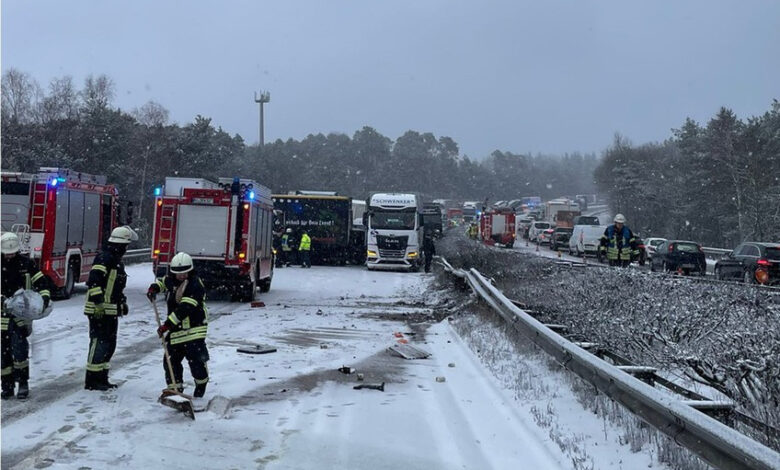 Massenkarambolage auf A6 mit 18 Fahrzeugen und zwei Verletzten