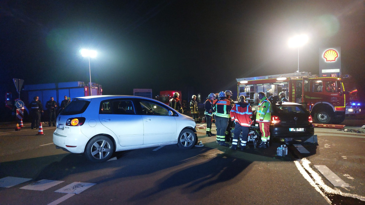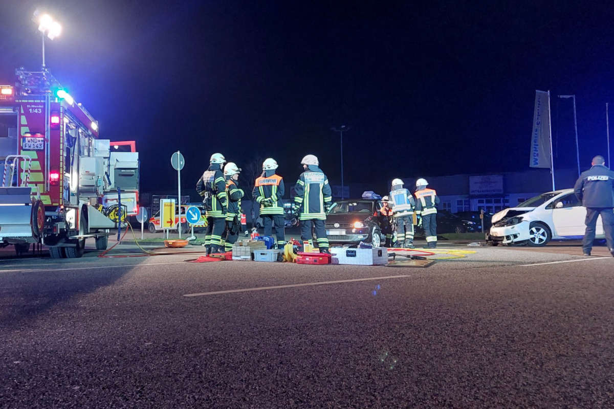 Infolge des Unfalls wurde die Fahrerin eines der beteiligten schwarzen PKWs in ihrem Fahrzeug eingeschlossen und musste durch die Feuerwehr befreit werden. Beide Fahrzeugführer erlitten Verletzungen und wurden umgehend vom Rettungsdienst behandelt.