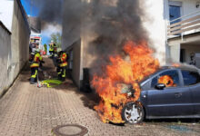 Nach ersten Erkenntnissen der Polizei prallte die Frau in der Steinwendener Straße in Ramstein-Miesenbach aus bislang ungeklärter Ursache in einen am rechten Fahrbahnrand geparkten Wagen. Die Wucht des Aufpralls schleuderte ihr Fahrzeug durch die Luft.