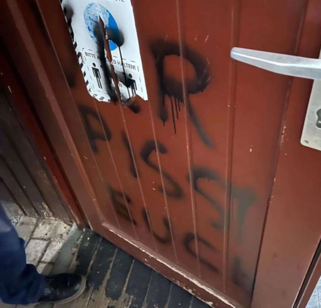 Der Verein veröffentlichte Bilder der Tat, die unter anderem ein Hakenkreuz sowie schriftliche Botschaften wie „Sterbt“, „Ausländer raus“ und „Verpisst euch“ zeigen. Besonders besorgniserregend sei, dass die verfassungswidrigen Symbole dort angebracht wurden, wo auch Kinder das Gebet erlernen.