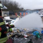 Aktuell ist ein Radlader vor Ort, um den abgelöschten Sperrmüllhaufen in einen offenen Container zu verladen. Gegen 15 Uhr dürfte das ZKE-Wertstoffzentrum den Betrieb wieder aufnehmen können.
