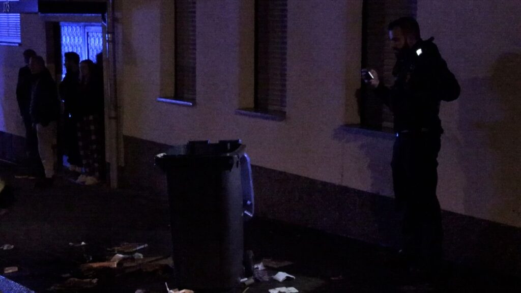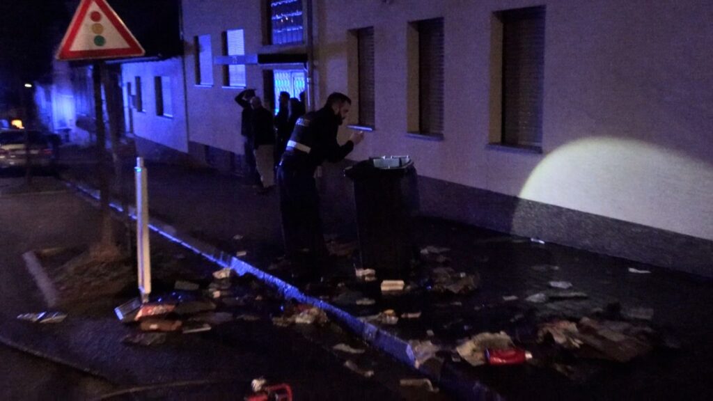 Mehrere Anwohner gaben an, zum Zeitpunkt des Brandausbruchs einen lauten Knall auf der Straße gehört zu haben. Beim Blick aus dem Fenster sahen sie nicht nur die brennende Mülltonne, sondern auch den auffälligen Mann als einzige Person in unmittelbarer Nähe. Zudem war im Bereich der Mülltonne deutlicher Benzingeruch wahrnehmbar.