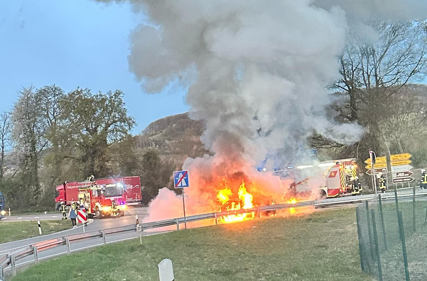 Perl – Am heutigen Montagmorgen, dem 7. April 2025, gegen 6:39 Uhr, geriet ein Fahrzeug an der Ausfahrt Perl der Autobahn A8 in Brand. Die Feuerwehr ist derzeit im Einsatz, um das Feuer zu löschen.