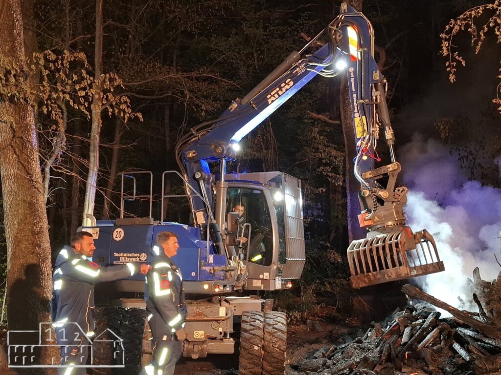 Die Nachlöscharbeiten gestalteten sich aufgrund der großen Menge gelagerten Holzes besonders schwierig. Unterstützung kam vom THW Ortsverband Spiesen-Elversberg, dessen Radbagger eingesetzt wurde, um das Brandgut auseinanderzuziehen und letzte Glutnester gezielt abzulöschen. Die Feuerwehr Sulzbach war mit rund 60 Kräften über fünf Stunden im Einsatz.