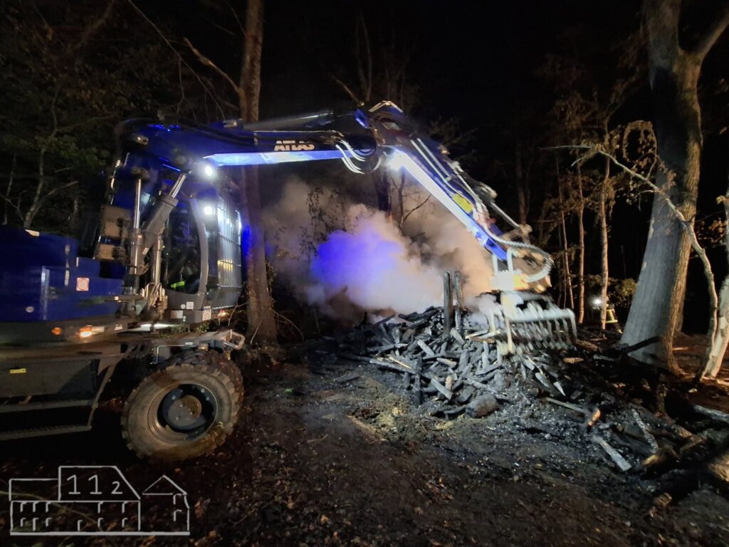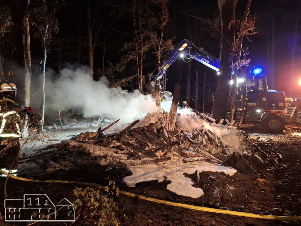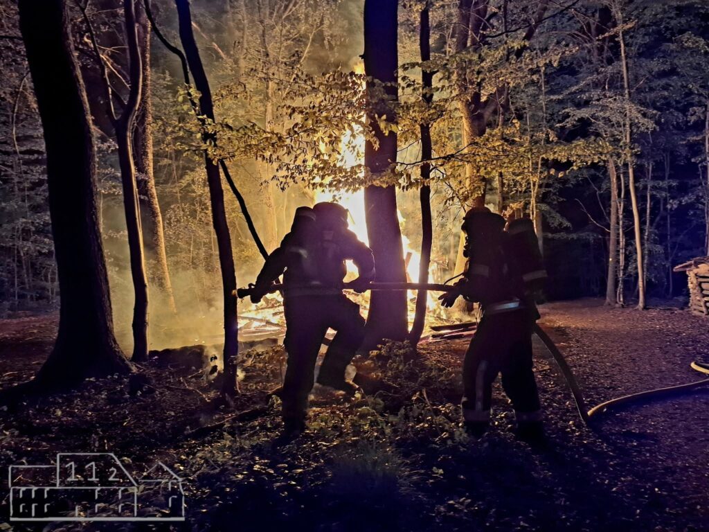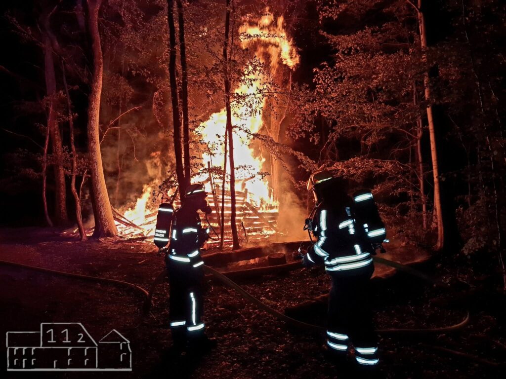 Vor Ort stand ein Holzschober in voller Ausdehnung in Flammen. Die Feuer loderten bis zu 20 Meter hoch in die Baumkronen und setzten auch umliegendes Gelände in Brand. Um eine Ausbreitung auf den Wald zu verhindern, wurden zusätzlich die Löschbezirke Neuweiler und Altenwald alarmiert. Mit insgesamt drei Strahlrohren gelang es den Kräften, das Feuer innerhalb einer Stunde unter Kontrolle zu bringen.