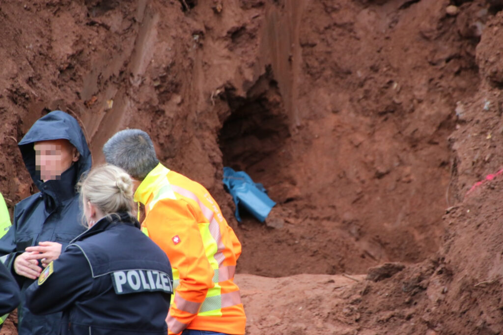 Saarbrücken – (Bildergalerie am Ende des Beitrags) Bei Bauarbeiten an der Großblittersdorfer Straße im Saarbrücker Stadtteil Güdingen-Schönbach sind am Dienstagmorgen (16. April 2025) menschliche Knochen gefunden worden. Der Fund ereignete sich gegen 9 Uhr im Rahmen von Befestigungsarbeiten an einem Hang, der im vergangenen Jahr nach Starkregenereignissen abgerutscht war.