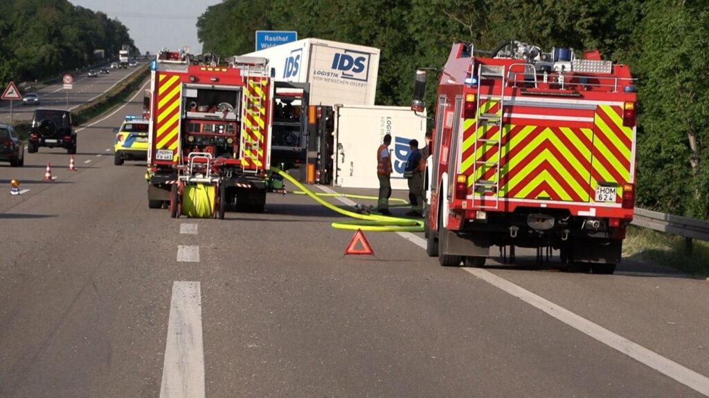 A6 bei Homburg: 40-Tonner verunglückt – Autobahn zwei Stunden gesperrt