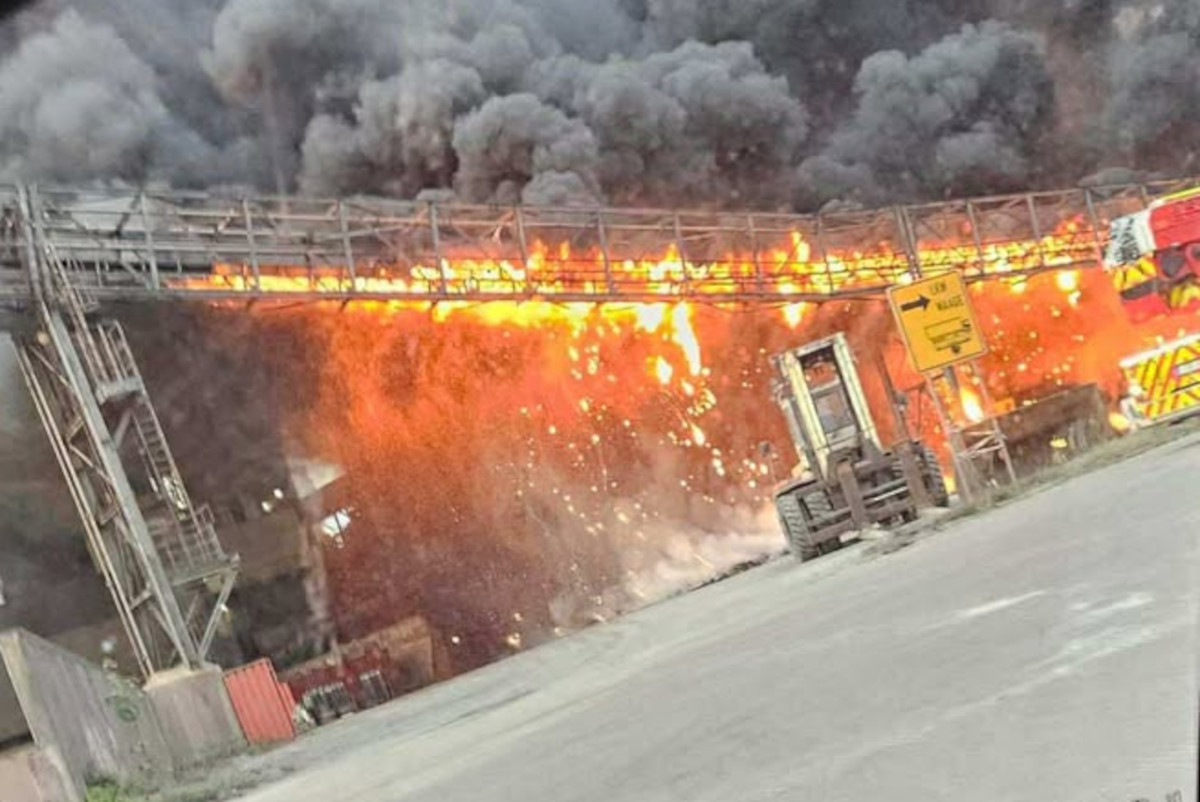 Wie stark sich die Flammen bislang ausgebreitet haben, ist derzeit noch unklar. Ein weiteres Bild zeigt eine in Vollbrand stehende Trasse auf dem Gelände. Die Einsatzkräfte sind weiterhin vor Ort und kämpfen gegen den Brand an.