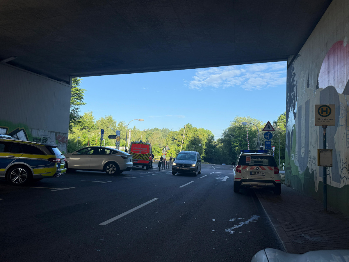 Der Verkehrsfunk meldet: Gefahr durch Unfallaufnahme, ortskundige Autofahrer werden gebeten, den Bereich weiträumig zu umfahren. Fahrgäste der Saarbahn müssen sich derzeit auf massive Verspätungen und längere Wartezeiten an den Haltestellen einstellen.