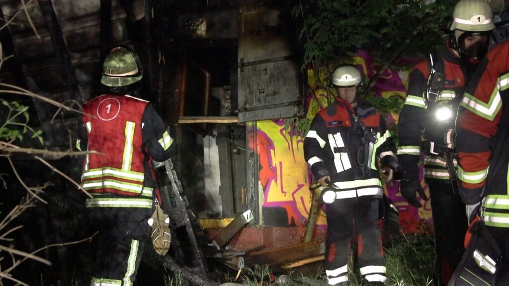 Ein Sicherheitsmitarbeiter äußerte sich vor Ort zur Situation: „Gerade wegen der Hexennacht waren wir besonders wachsam. Trotzdem muss sich jemand unbemerkt Zugang verschafft und das Feuer gelegt haben. Wir haben verdächtige Geräusche gehört – dann stand plötzlich alles in Flammen.“ Die Kriminalpolizei hat die Ermittlungen wegen des Verdachts der Brandstiftung aufgenommen. Hinweise auf den oder die Täter liegen bislang nicht vor.