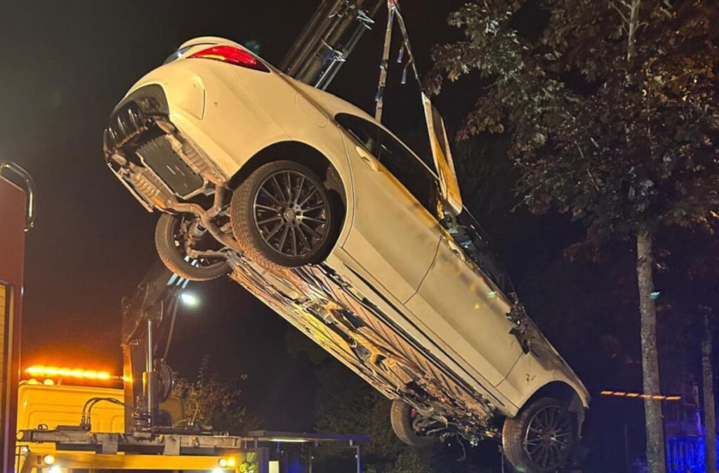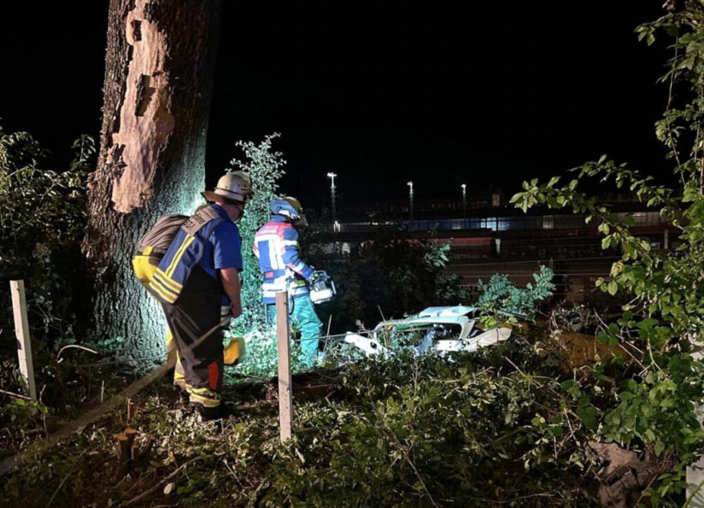 Vor Ort stellte sich zum Glück heraus: Alle Fahrzeuginsassen hatten sich bereits selbst befreien können und wurden bereits vom Rettungsdienst versorgt. Dennoch blieb die Situation kritisch – das Unfallfahrzeug drohte, weiter den Hang hinabzurutschen. Um das zu verhindern, wurde es durch die Feuerwehr mit einem Greifzug gesichert.