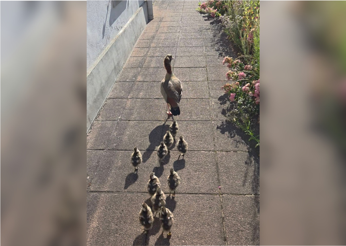 Vor Ort fanden die Beamten eine Szene, die gleichermaßen rührend wie heikel war: Eine Nilgansmutter samt zehn Küken war zwischen den hohen Seitenbegrenzungen der Straße gefangen – ein Ausweg war für die Tierfamilie schlicht nicht in Sicht. Die kleinen Gänschen watschelten nervös hin und her, während die Mutter unermüdlich nach einem sicheren Pfad suchte.