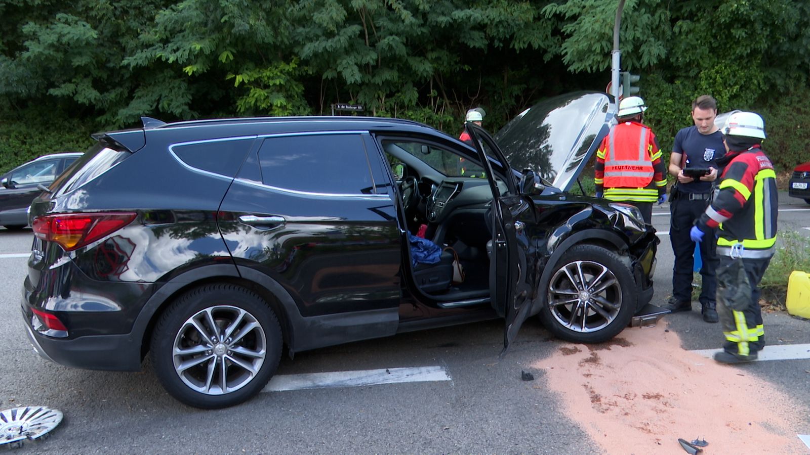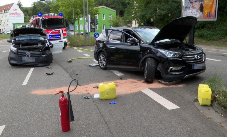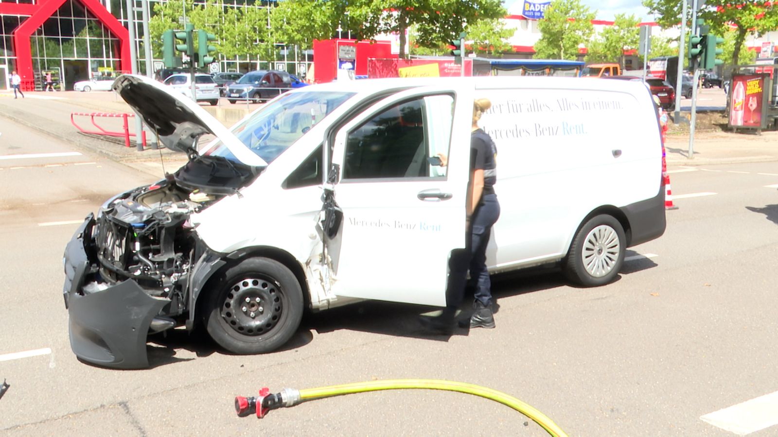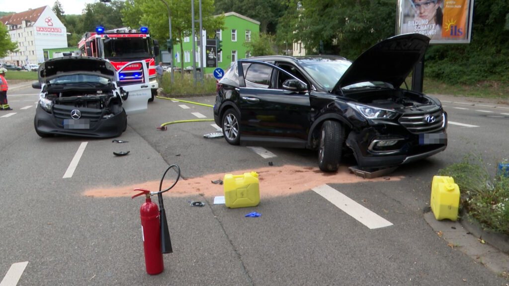 Nach Ermittlungen der Beamten vor Ort kamen beide Fahrzeug von der A623 auf der zweispurigen Straße in Richtung Innenstadt gefahren. In Höhe Bauhaus kam es dann in Folge eines Fahrspurwechsels zur Kollision zwischen einem Mercedes Sprinter und einem SUV der Marke Hyundai Santa Fee zum Zusammenstoss. Dabei brach an dem SUV die Vorderachse und Betriebsmittel liefen aus.
