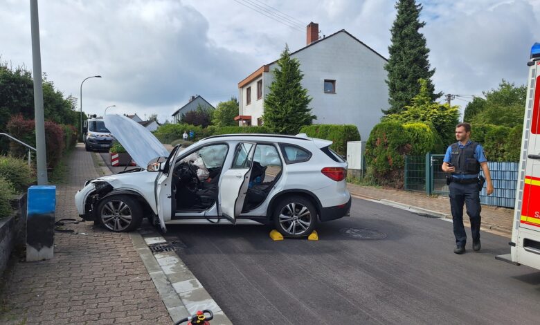 Vor Ort stellte sich die Lage jedoch weniger dramatisch dar: Weder war die gemeldete Person im Fahrzeug eingeklemmt, noch brannte der Pkw. Der Fahrer konnte sich selbst befreien und wurde vom Rettungsdienst medizinisch versorgt. Ein Notarzt war ebenfalls im Einsatz. Nach ersten Erkenntnissen war das Fahrzeug alleinbeteiligt von der Straße abgekommen und gegen einen Laternenmast geprallt.