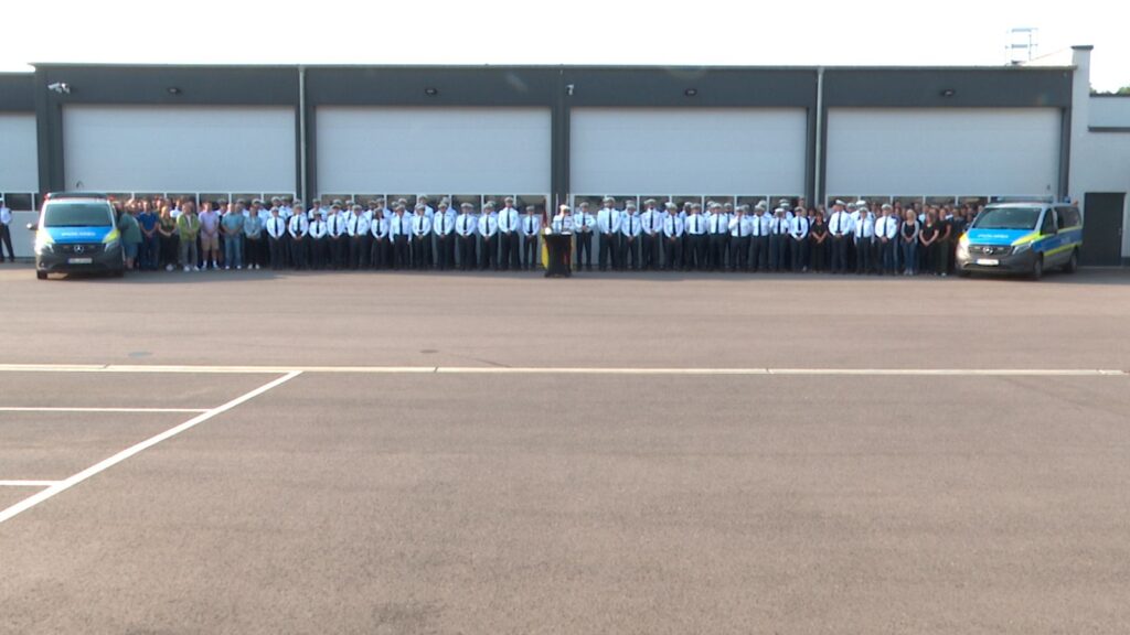 Kirkel – (Bildergalerie am Ende des Beitrags) Punkt 9 Uhr verharrte das Saarland in einer landesweiten Schweigeminute. In erster Linie gedachten jedoch die Kollegen von der saarländischen Polizei am heutigen Mittwochmorgen (27. August 2025) ihrem am letzten Donnerstag im Dienst erschossenen Kollegen Simon B.. Am Polizeizentrum „Guy Lachmann“ in Kirkel, Sitz der Bereitschaftspolizei sowie mehrerer Spezialeinheiten, gab es daher eine besondere Zeremonie.
