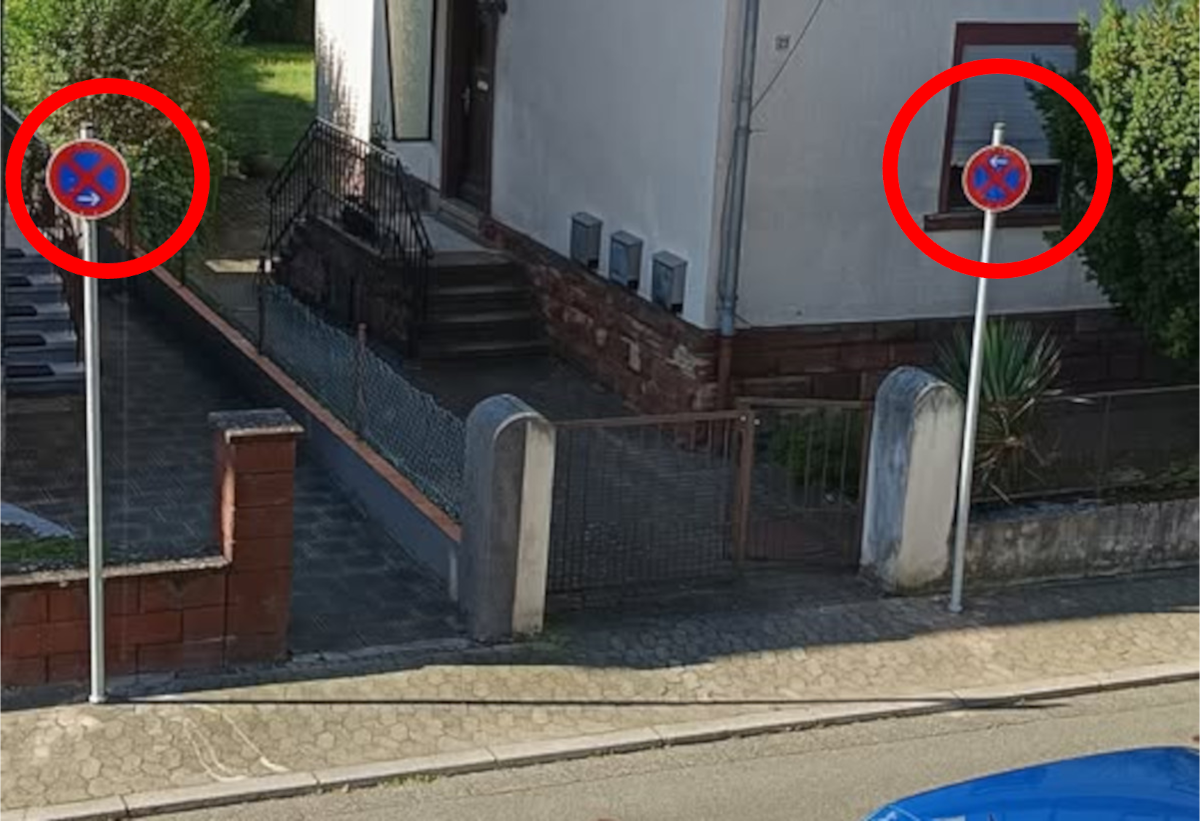Als wäre das Mini-Halteverbot nicht schon kurios genug, haben die Planer auch noch bei der Reihenfolge der Schilder danebengegriffen: Zuerst wurde in Fahrtrichtung das Schild montiert, das das Ende des Halteverbots anzeigt – direkt gefolgt von einem Schild, das das Beginn des Halteverbots verkündet. Juristisch unzulässig, praktisch unsinnig – und optisch ein echter Hingucker.