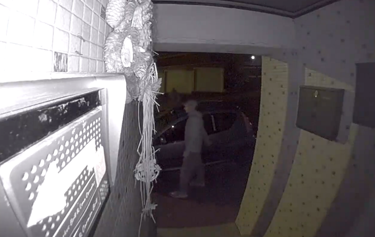 Auf den Aufnahmen der Ring-Kamera ist zu sehen, wie ein Unbekannter mit tief ins Gesicht gezogener Kapuze die Straße entlangläuft. Der Mann scheint zu prüfen, ob abgestellte Fahrzeuge abgeschlossen sind. Kurz darauf ist auf der gegenüberliegenden Straßenseite eine zweite vermummte Person zu erkennen, die sich offenbar ähnlich verhält.