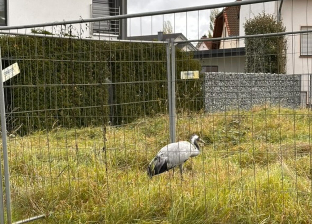 Eingezäunt und allein: Kranker Kranich bewegt Anwohner in Rehlingen