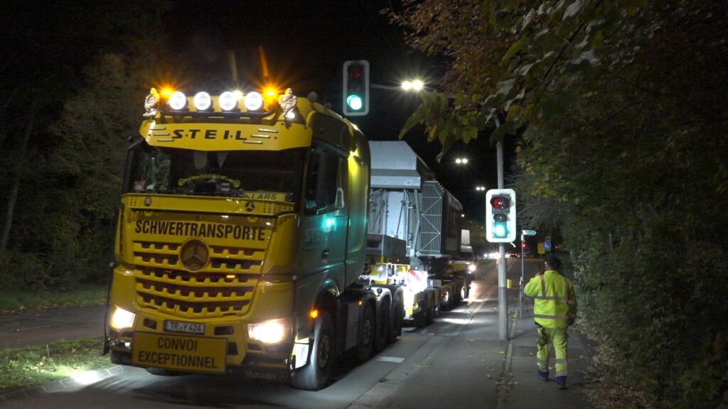 Nächtlicher Schwertransport: Trafo-Koloss rollt durch das Saarland