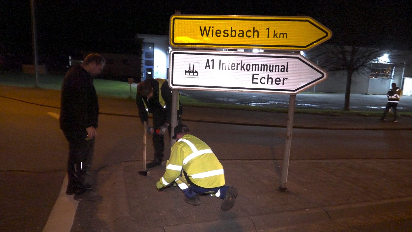 So mussten am Kreisverkehr in Nalbach mehrere Verkehrsschilder demontiert werden, damit der Schwerlasttransporter über die Verkehrsinsel fahren konnte. In Eiweiler bestand die Aufgabe für die Begleitfahrzeuge für eine komplett freie Durchfahrt zu sorgen, damit genügend Schwung da war für die Bergaufstrecke. Hinter dem letzten Begleitfahrzeug bildete sich eine mehrere hundert Meter lange Blechlawine von Autos, die nicht überholen durften.