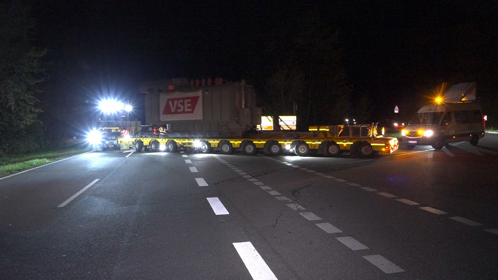 Fazit: Der nächtliche Transport ging problemlos über die Bühne. Der neue Trafo kann am Montag von den VSE-Technikern am Umspannwerk installiert werden.