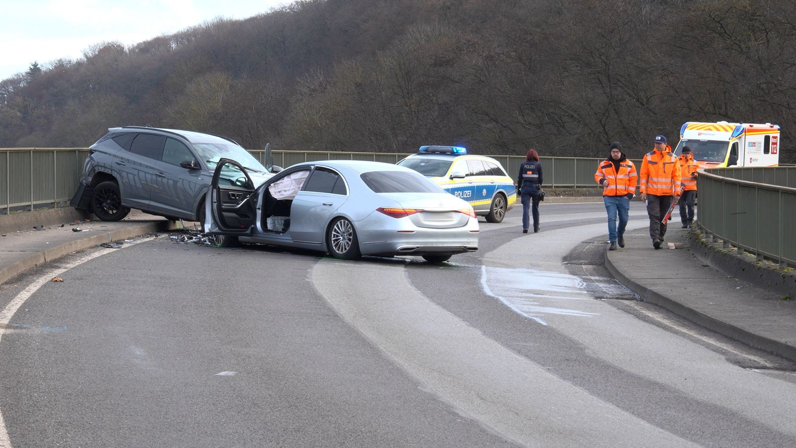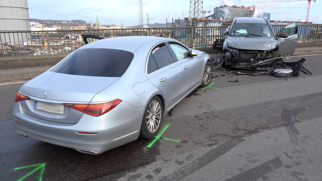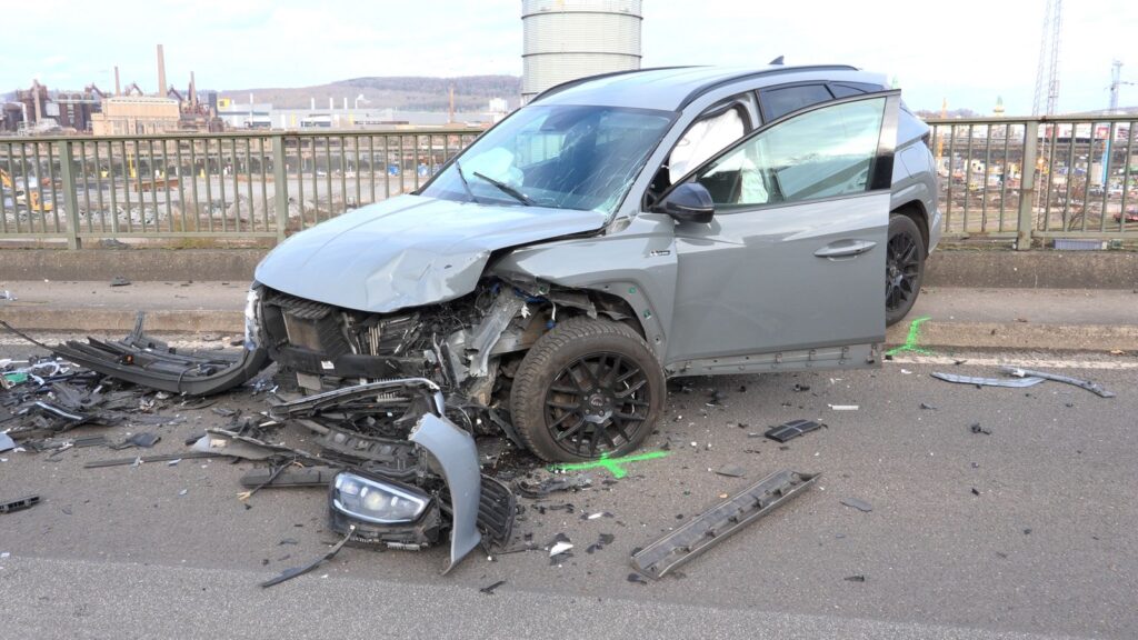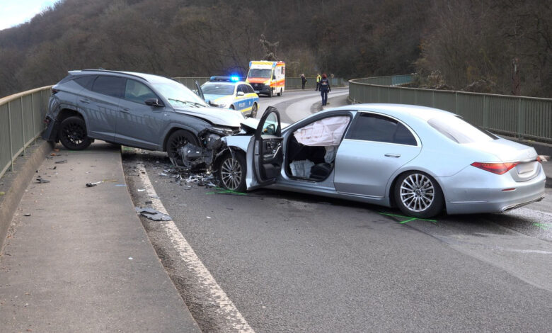 Frontalcrash auf Brücke über A620 – Zwei Verletzte, langer Stau