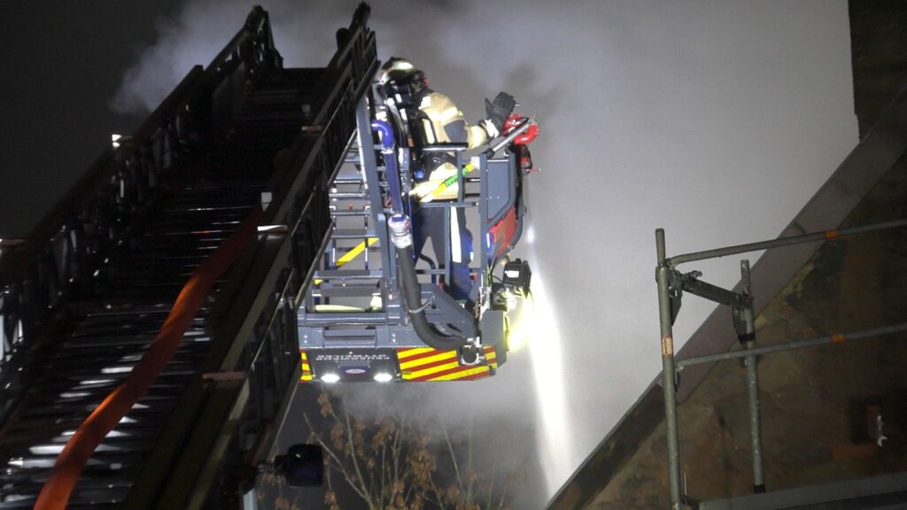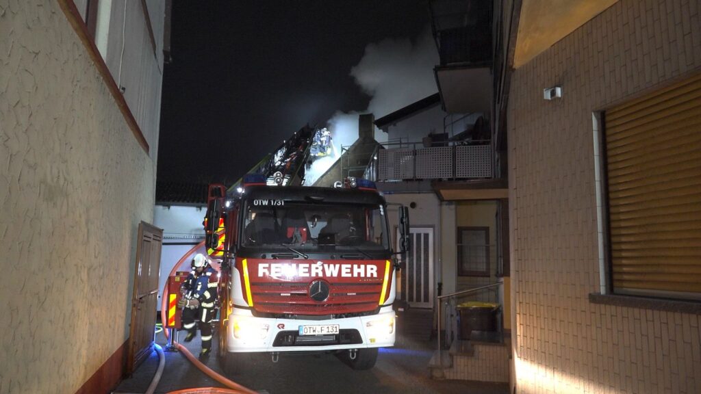 Schiffweiler – (Von unserem Reporter Thorsten Kremers – Bildergalerie am Ende des Beitrags) In der Nacht zum Montag (24. November 2025) kam es in der Hauptstraße in Schiffweiler zu einem großen Feuerwehreinsatz. Gegen 00:44 Uhr wurde ein Gebäudebrand gemeldet. Beim Eintreffen der ersten Einsatzkräfte bot sich ein dramatisches Bild: Aus einem im Innenhof gelegenen, leerstehenden Gebäude schlugen Flammen aus dem Dachgiebel, dichte Rauchwolken standen über dem Ortskern.