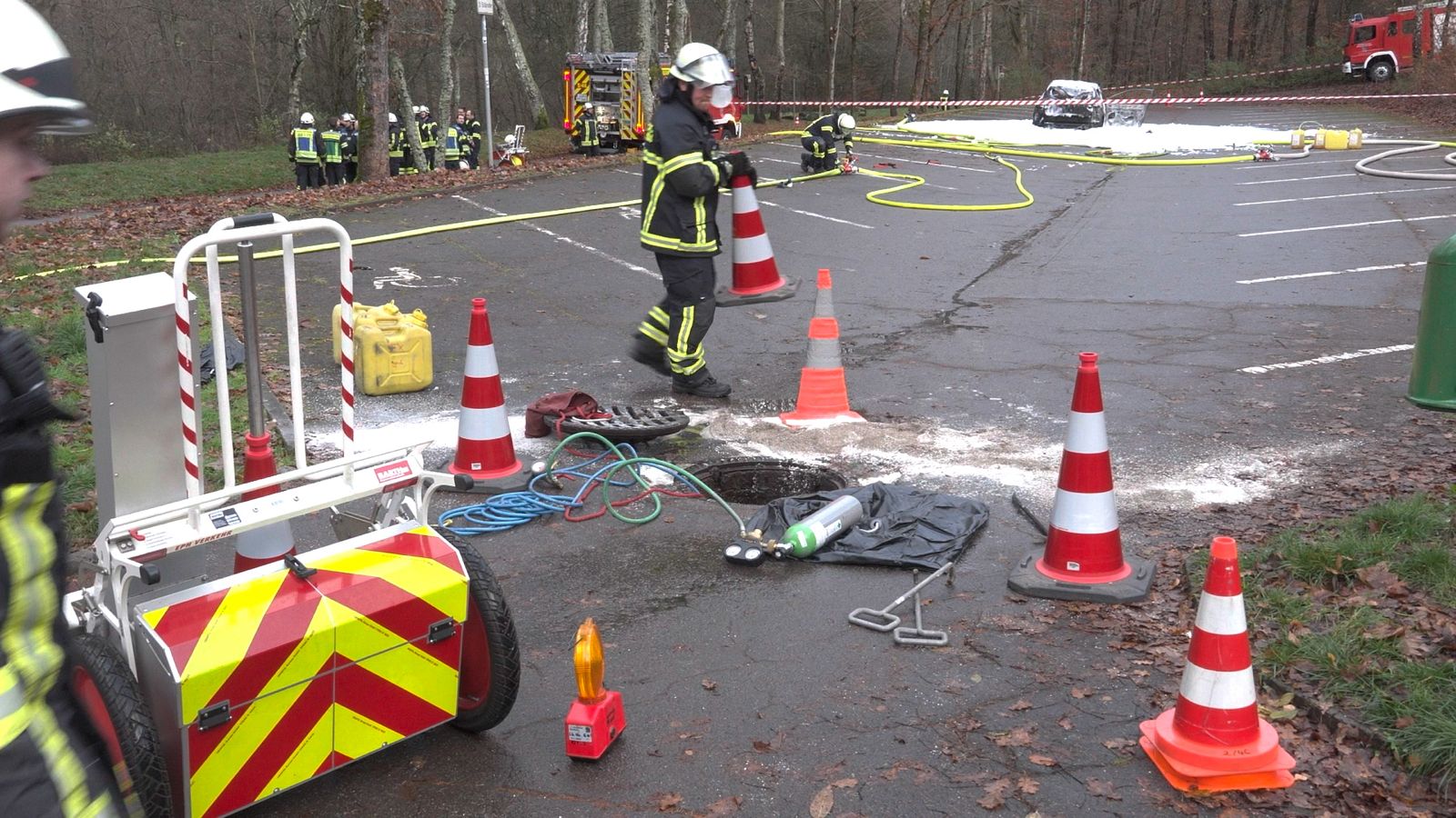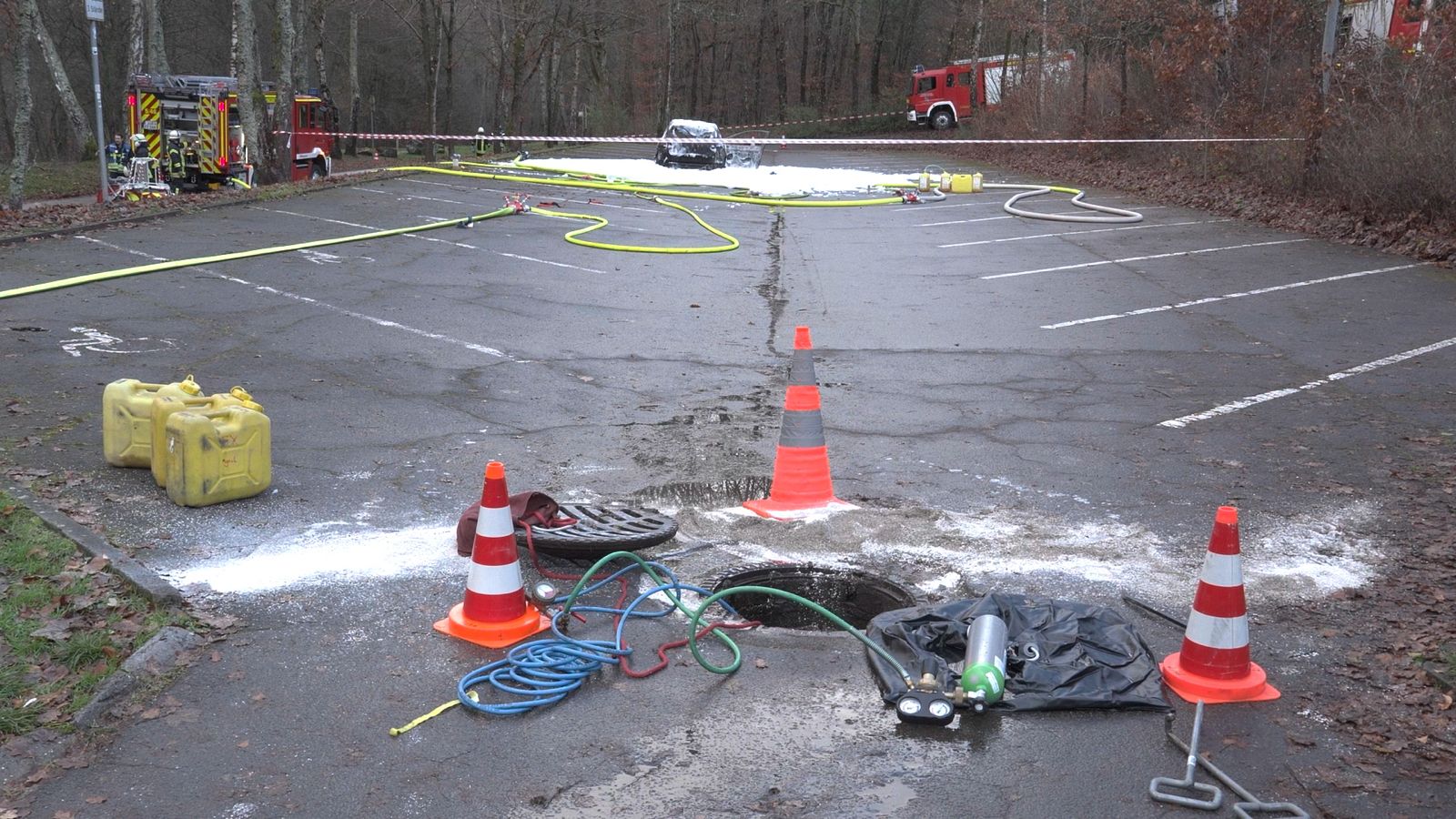 Da sich der Parkplatz innerhalb eines Trinkwasserschutzgebietes befindet, wurde außerdem Umweltalarm ausgelöst. Lösch- und Brandrückstände gelangten in das Kanalsystem. Vertreter des Landesamts für Umwelt- und Arbeitsschutz (LUA) waren vor Ort. Nach ersten Einschätzungen besteht jedoch keine Gefahr für den Glashütter Weiher, da das Abwasser über die Kläranlage abgeführt wird.
