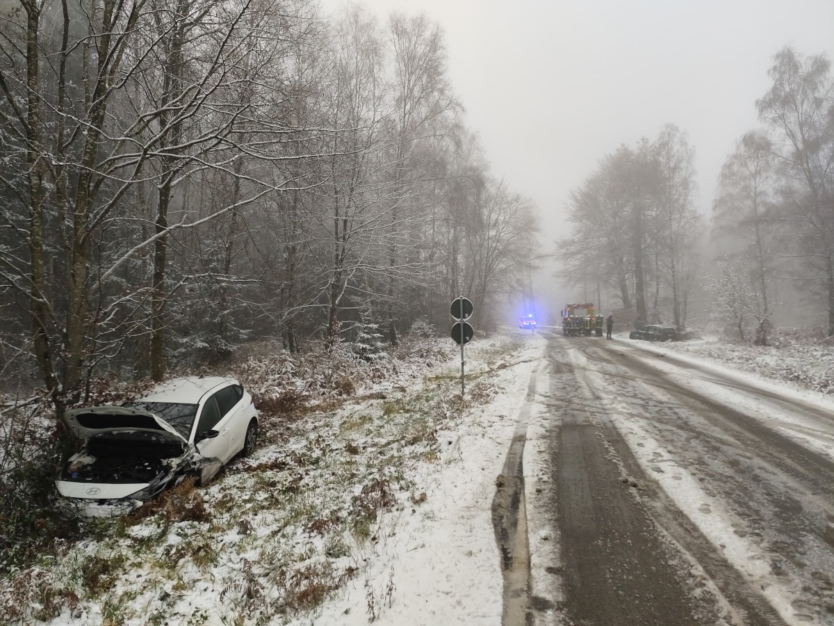 Verkehrsunfall auf schneebedeckter Fahrbahn Nahe Weiskirchen – Zwei Personen verletzt