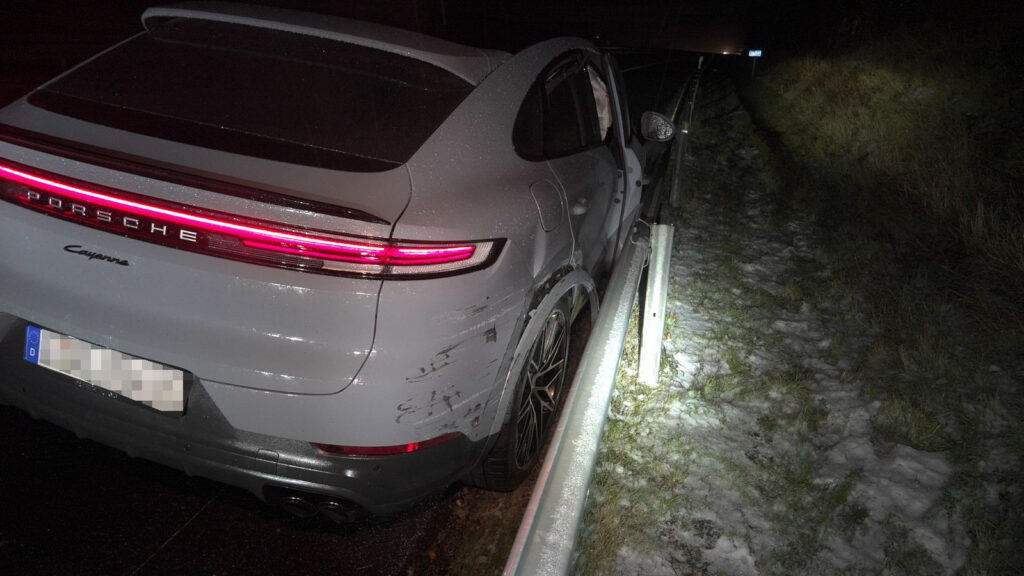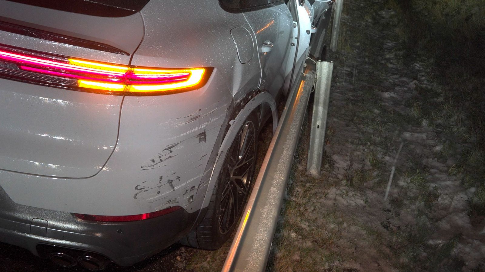 Der Wagen kam nach rechts von der Fahrbahn ab, prallte zunächst gegen eine Leitplanke und rutschte anschließend rund 100 Meter weiter, bevor er erneut an der Leitplanke zum Stehen kam. Am Porsche entstand dabei Blechschaden im Front- und Heckbereich.
