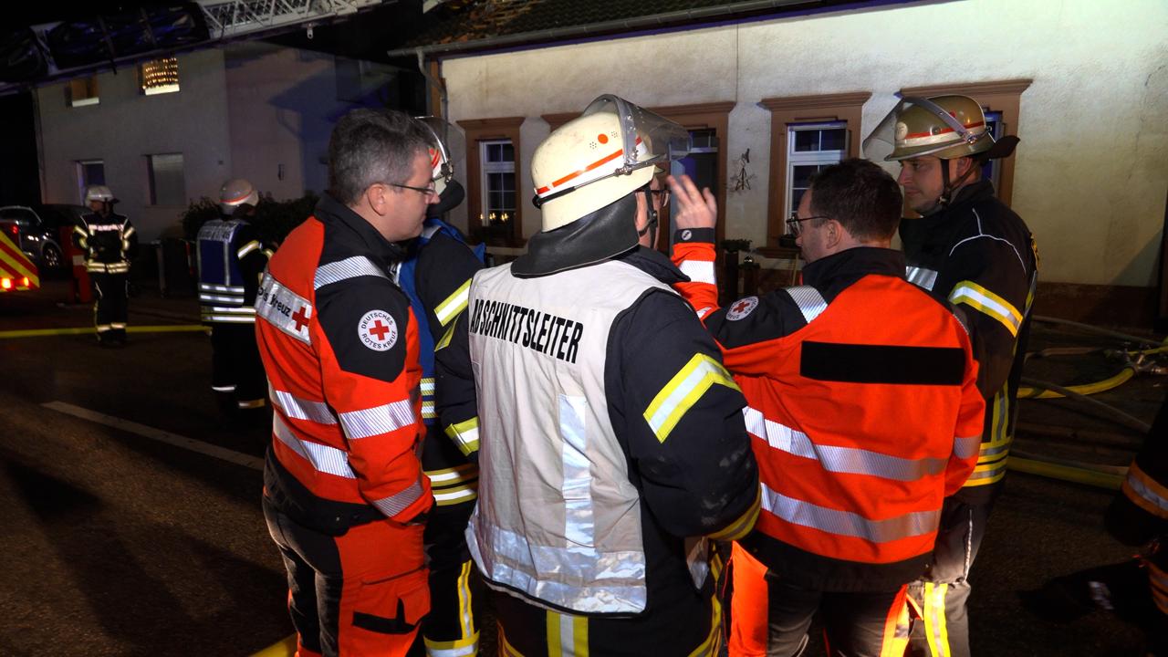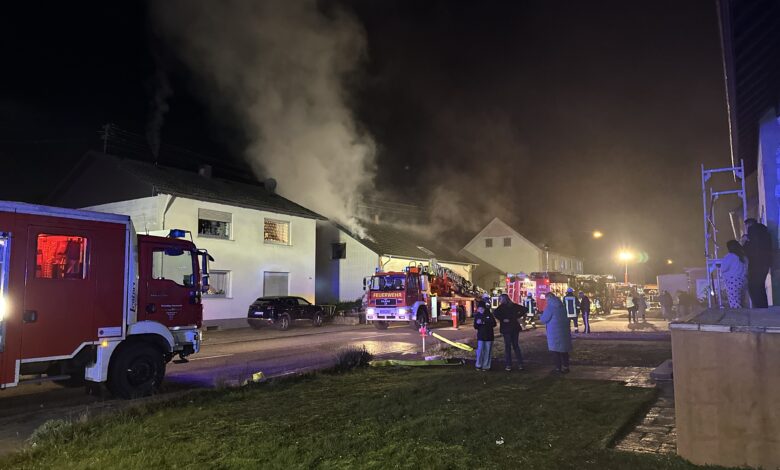 Unmittelbar danach rückten sie mit Blaulicht zum Einsatz aus. Beim Eintreffen der ersten Einsatzkräfte lag ein Großteil des Ortskerns bis hin zur Kirche bereits im dichten Rauch. Aus dem Dach des betroffenen Wohnhauses stiegen hohe Rauchschwaden auf. Wie sich herausstellte, war in einer Wohnung im Obergeschoss ein Feuer ausgebrochen, das sich auf den Dachstuhl ausgedehnt hatte.
