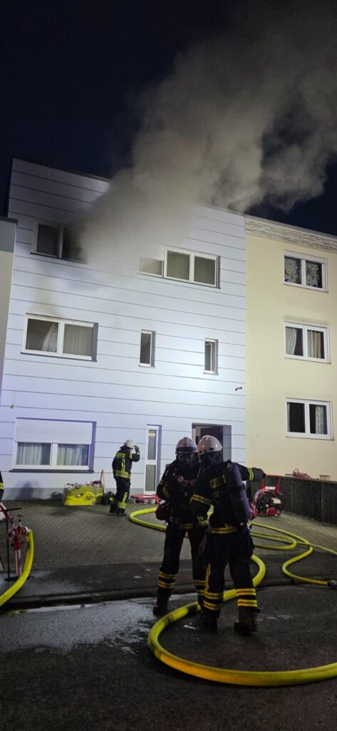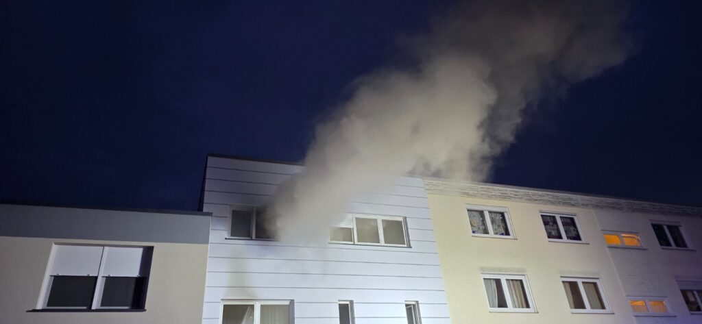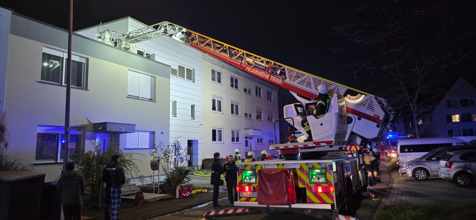Trier-Ehrang – (Von unserem Reporter Conrad Geidies – Weitere Bilder am Ende des Beitrags) Am späten Mittwochnachmittag (3. Dezember 2025) wurde die Feuerwehr Trier um 16:46 Uhr zu einem Zimmerbrand in der Gotenstraße alarmiert.