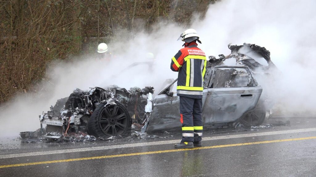 Saarbrücken – (Von unserem Reporter Thorsten Kremers – Bildergalerie am Ende des Beitrags) Auf der Autobahn A6 in Fahrtrichtung Mannheim ist es am Samstagmorgen (20. Dezember 2025) m Baustellenbereich der Bischmisheimer Talbrücke zu einem Fahrzeugbrand gekommen. Ein Range Rover geriet gegen 9.05 Uhr während der Fahrt in Brand und brannte innerhalb kurzer Zeit vollständig aus.