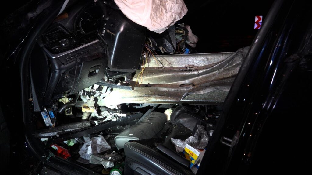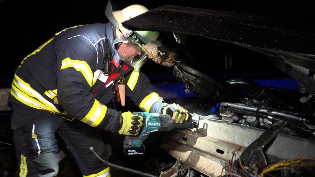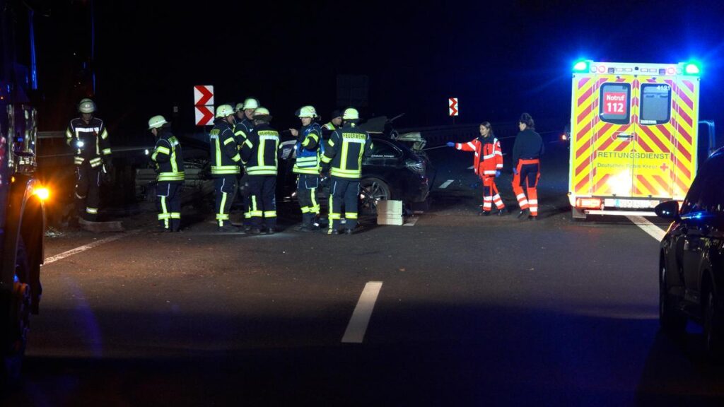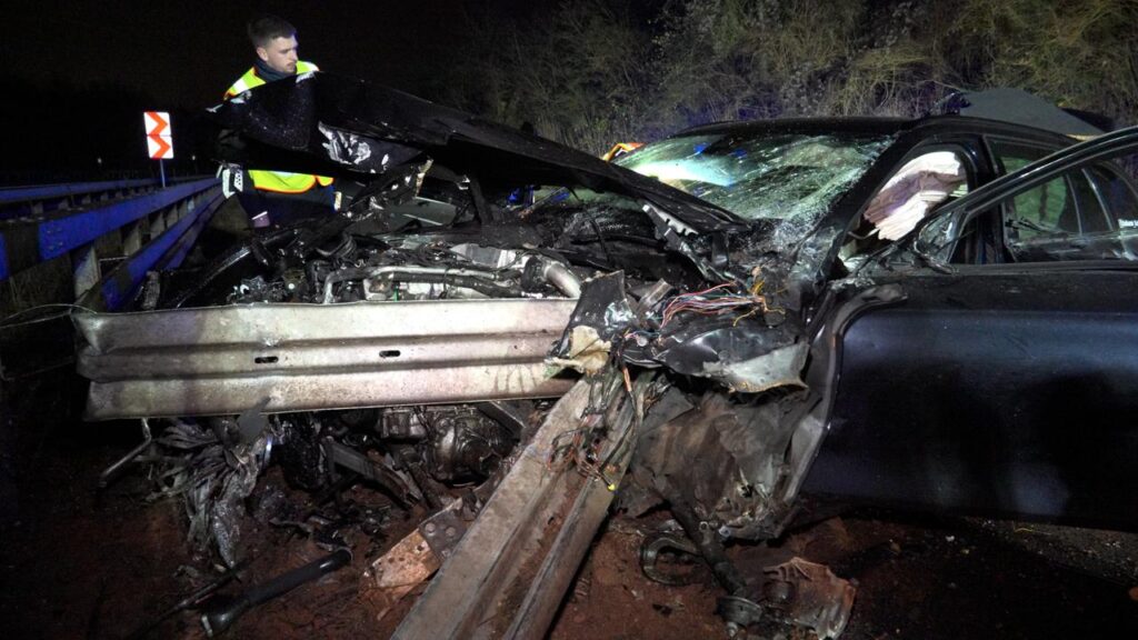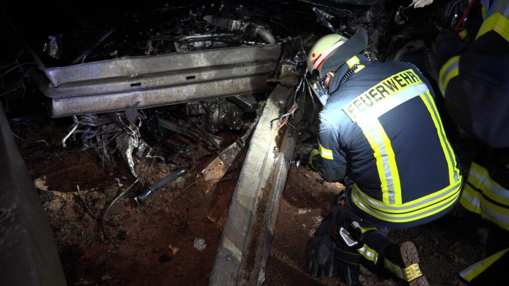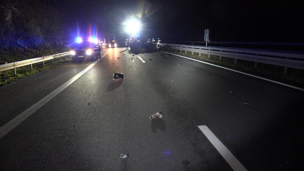 Rehlingen – (Von unserem Reporter Thorsten Kremers – Bildergalerie am Ende des Beitrags) Schwerer Unfall in der Nacht von Sonntag auf Montag (15. Dezember 2025) auf der A8 Luxemburg in Richtung Karlsruhe: Zwischen Rastplatz Niedmündung und Rehlingen (Kreis Saarlouis) kommt gegen 2:45 Uhr in einer Rechtskurve ein luxemburgischer BMW zunächst nach rechts von der Fahrbahn ab, schleudert dann vom Grünstreifen weiter bis zur Mittelleitplanke.