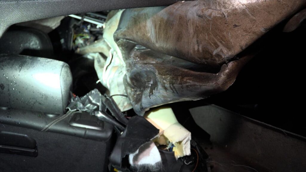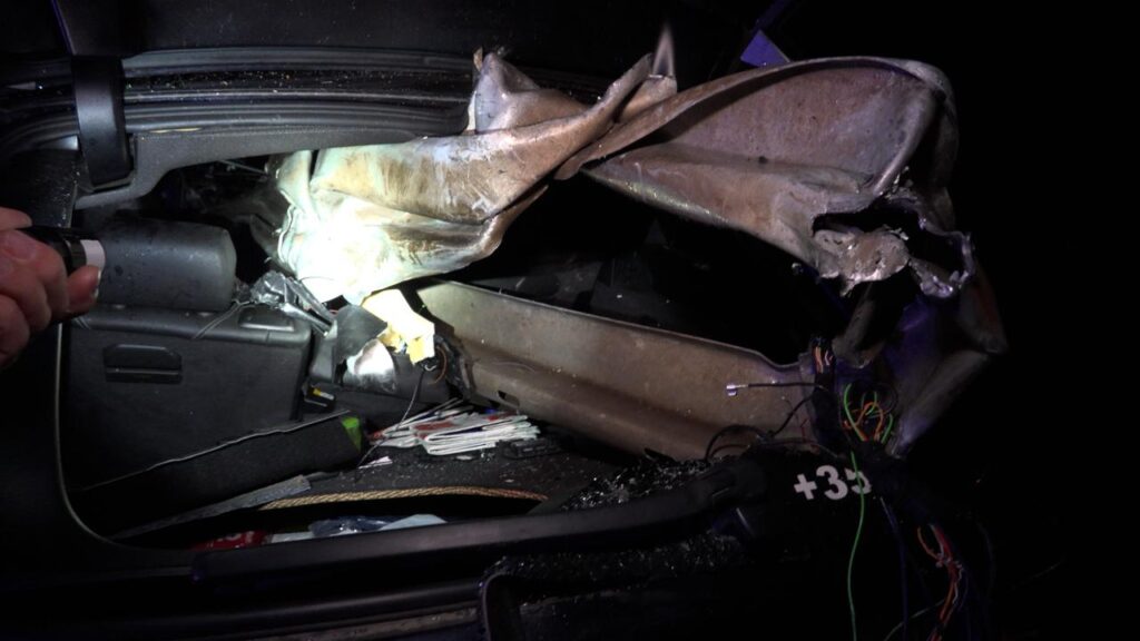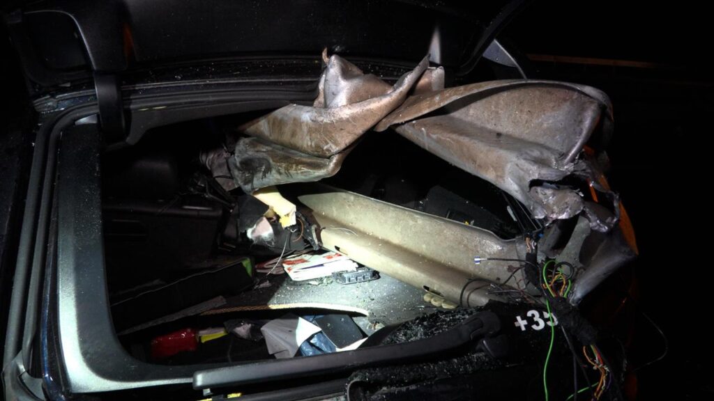 Das Fahrzeug verbiegt einige Meter der Schutzeinrichtung. Ein Element der Mittelleitplanke bohrt sich vom Motor durch den gesamten Fahrgastraum bis zum Kofferraum. Wie durch ein Wunder wird der männliche Fahrer davon nicht getroffen. Er kommt jedoch schwer verletzt in ein Krankenhaus. Laut Polizei besteht jedoch keine Lebensgefahr.