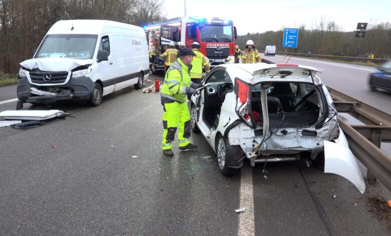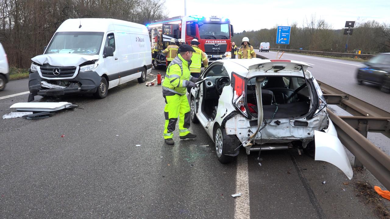 Der Fahrer eines Lieferwagens erkennt wohl zu spät, dass die Fahrzeuge vor ihm stehen, beziehungsweise nur im Schritttempo vorankommen. Der silberfarbene Mercedes Sprinter kracht auf dem rechten Fahrstreifen in das Heck eines vorausfahrenden weißen Kleinwagens. Das Auto wird durch die Wucht des Aufpralls quer über die Fahrbahn geschleudert, kommt entgegengesetzt zur Fahrtrichtung zum stehen. Nachfolgende Verkehrsteilnehmer wählen den Notruf, woraufhin der Rettungsdienst zur Unfallstelle ausrückt. Als die Notfallmediziner wenige Minuten später vor Ort eintreffen, befindet sich noch eine Person in dem Kleinwagen.