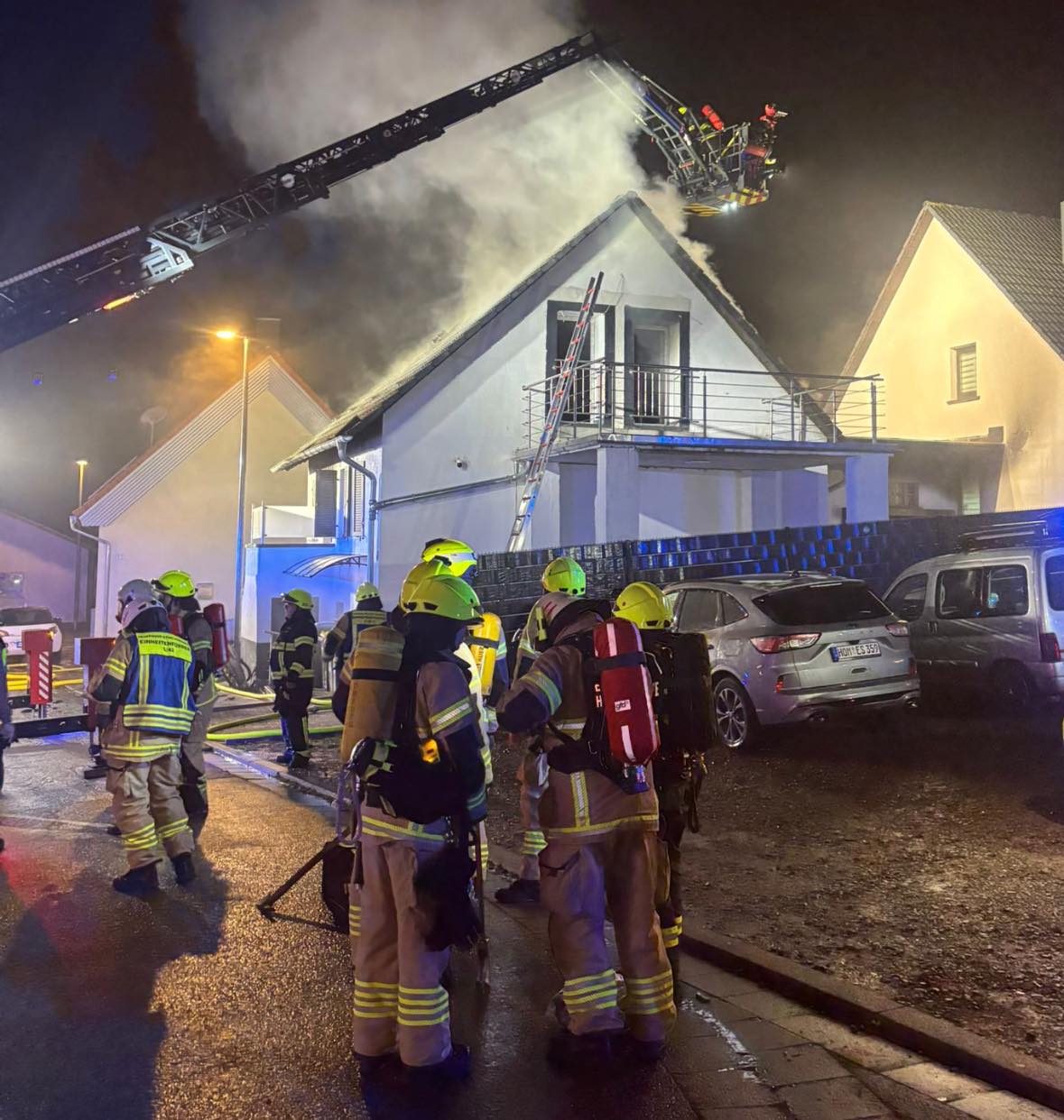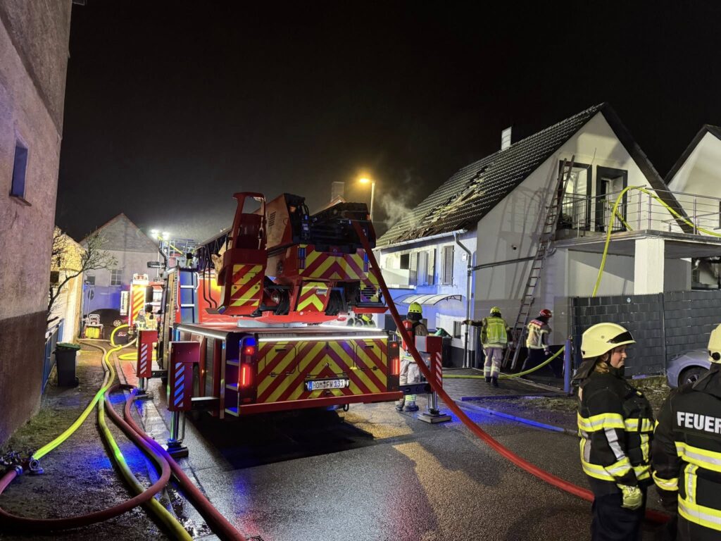Homburg – In der Nacht zum Dienstag (28. Januar 2026) ist es im Homburger Stadtteil Erbach zu einem schweren Dachstuhlbrand gekommen. Gegen 1.30 Uhr wurden die Einsatzkräfte alarmiert, nachdem sich in einem Wohnhaus ein Feuer rasch auf den gesamten Dachbereich ausgebreitet hatte. Beim Eintreffen der Feuerwehr standen bereits beide Seiten des Dachstuhls in Flammen.