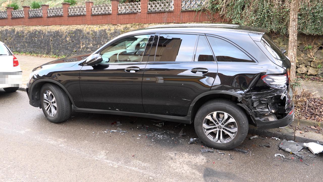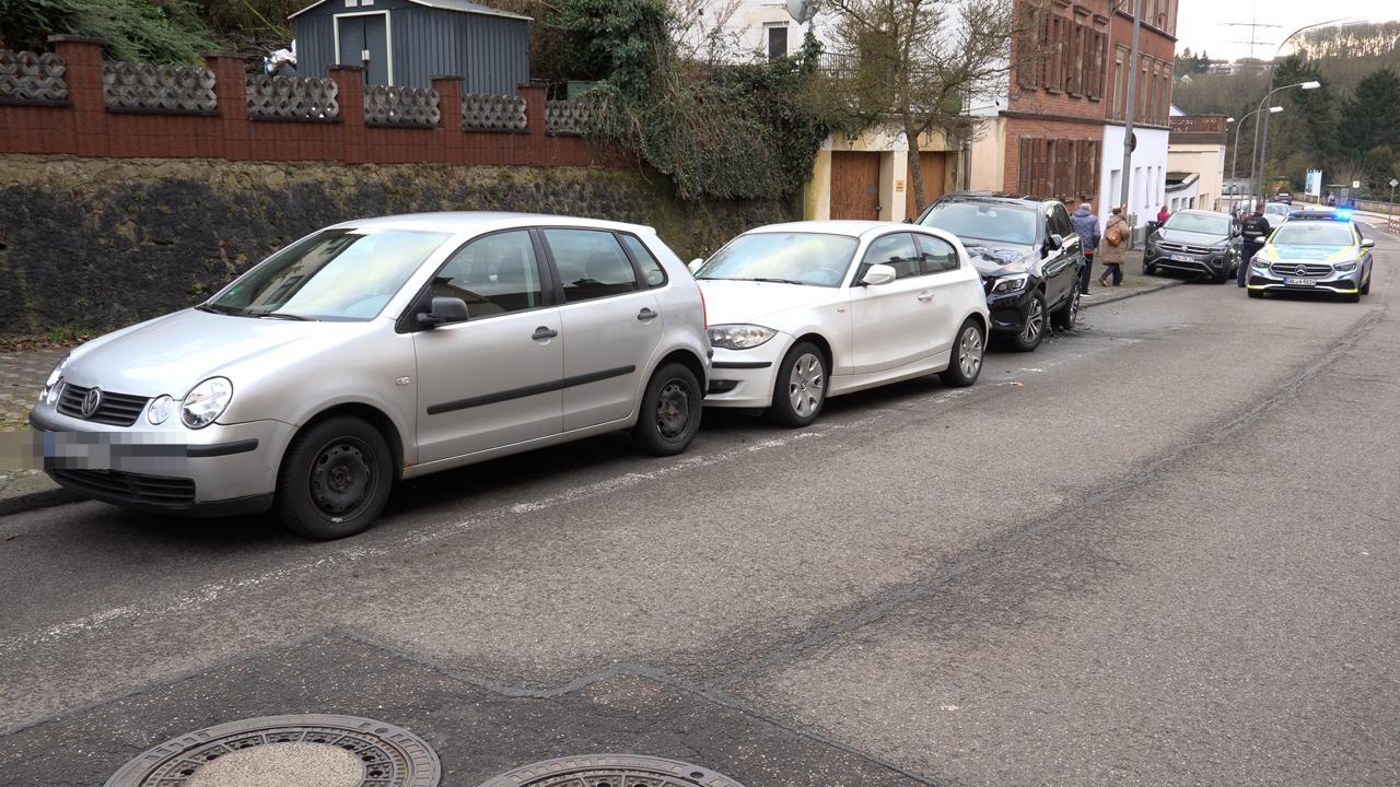Unfall aus Unachtsamkeit: der Fahrer eines VW ID 3 fährt in der Neuhauserstraße durch Saarbrücken-Russhütte stadtauswärts. Laut Polizei kracht er aus Unachtsamkeit in vier Autos.