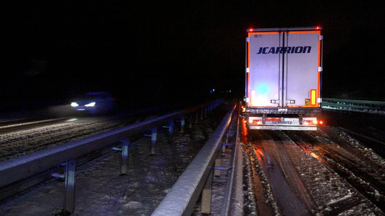 Besonders angespannt war die Lage auf der A1 zwischen Tholey und Nonnweiler-Primstal. Dort blockierte ein querstehender 40-Tonnen-Lkw gegen 22 Uhr für rund eineinhalb Stunden die komplette Autobahn. Der Lastwagen hatte sich auf glatter Fahrbahn festgefahren und konnte erst weiterfahren, nachdem der Streudienst gegen 23.30 Uhr die Fahrbahn behandelt hatte. Erst danach rollte der Verkehr wieder an.