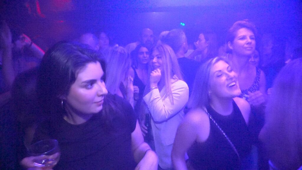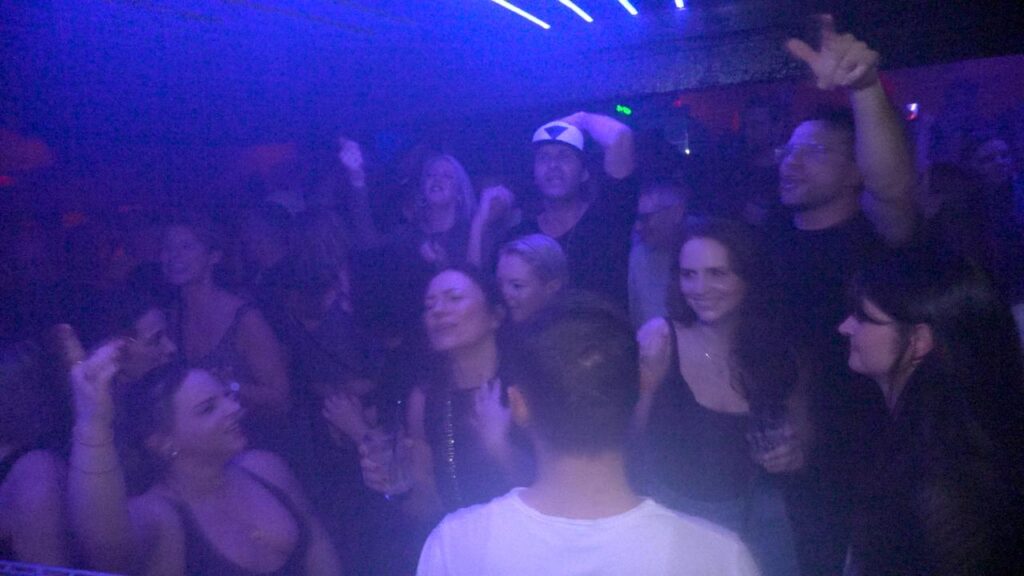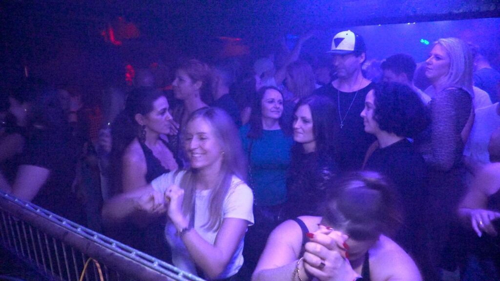 Das Publikum ist bunt gemischt:Junge Leute Anfang 20 mit Bock auf Party, eine große Gruppe Feiernde mittleren Alters bis hin zu einem Pärchen der Generation 70 plus. Wenige kommen mit Einkaufstüten an die Garderobe. Die Meisten haben sich bewusst auf die Party vorbereitet und sich bereits vor Wochen das e-Ticket online gesichert. Die Stimmung ist ausgelassen, der Pegel stimmt bereits, man erkennt sich wieder nach langer Zeit beruflicher oder familiärer Abwesenheit aus dem Partyleben.
