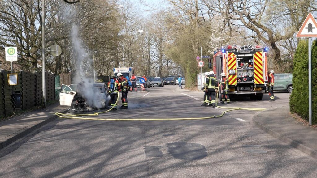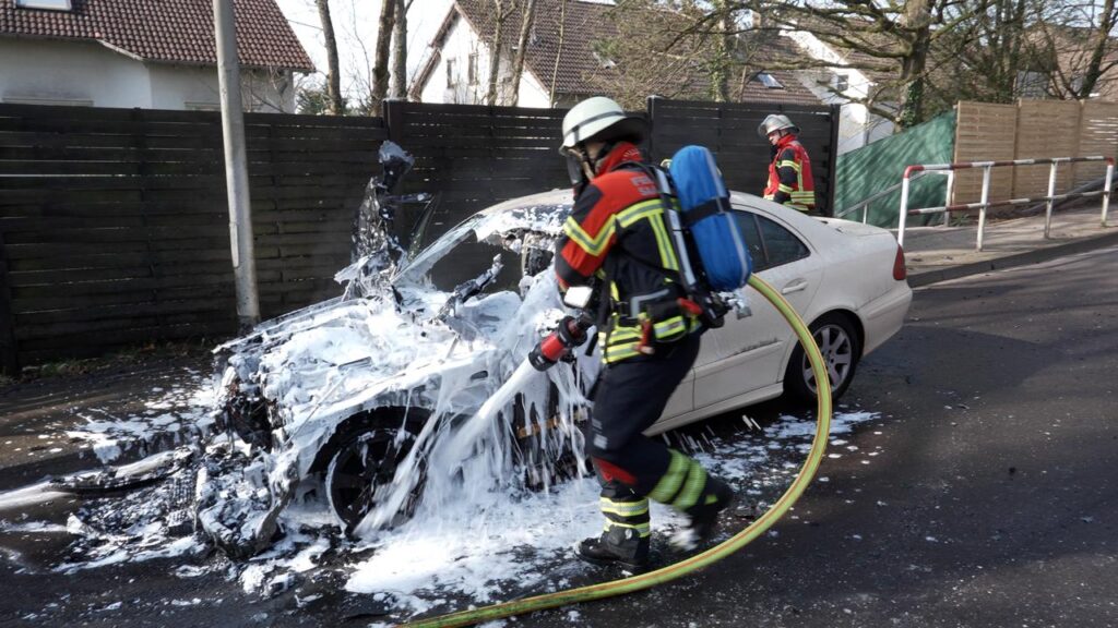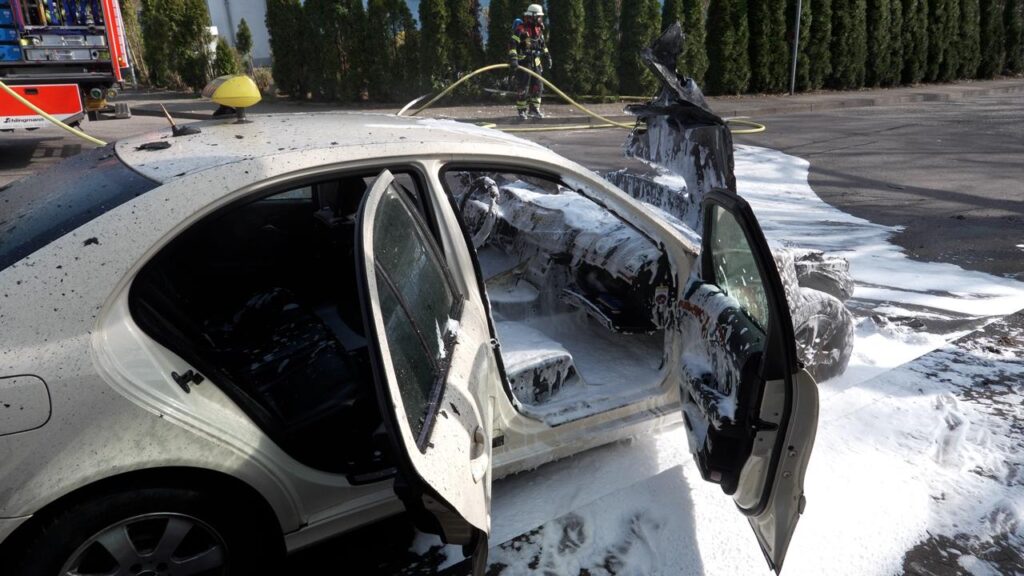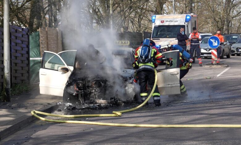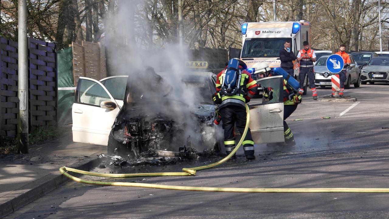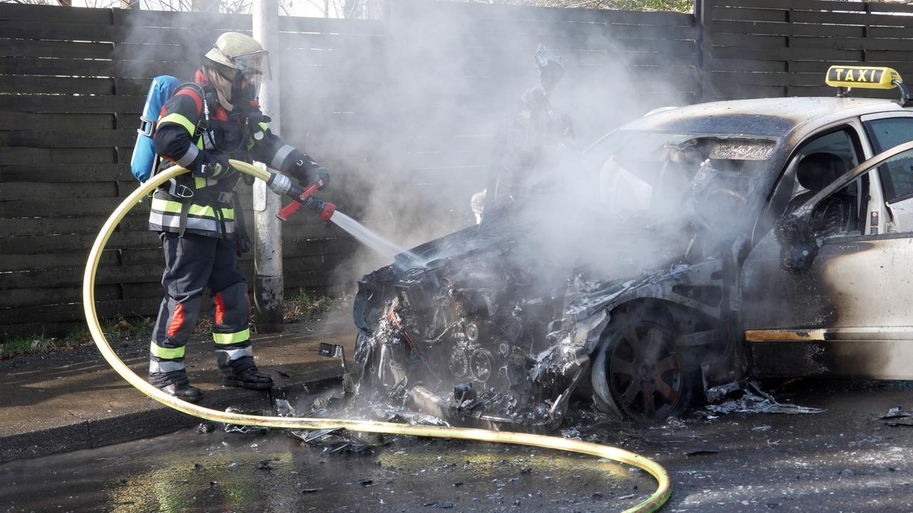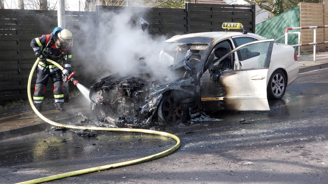 Der Fahrer stellte den Mercedes noch am Straßenrand ab, sodass sich alle Insassen rechtzeitig in Sicherheit bringen konnten. Kurz darauf griffen die Flammen jedoch auf das gesamte Fahrzeug über. Als die Feuerwehr eintraf, stand das Taxi bereits in Vollbrand.