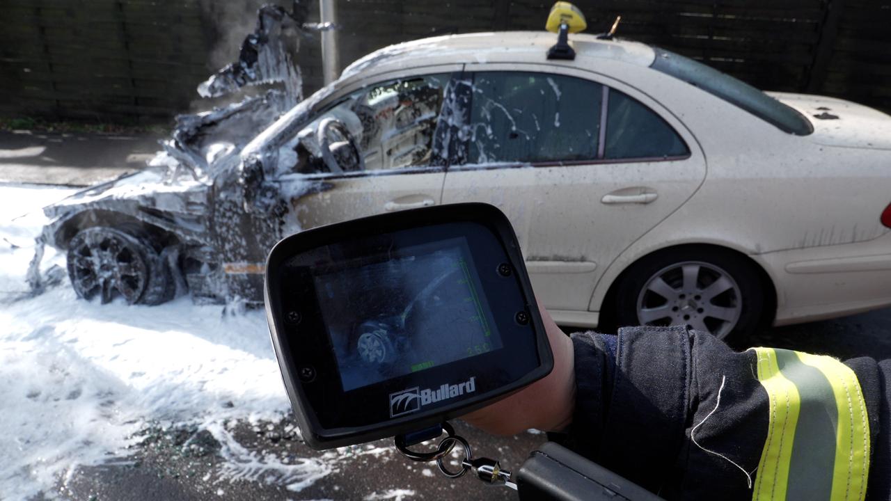 Die Einsatzkräfte begannen umgehend mit den Löscharbeiten und bekämpften die Flammen zunächst mit einem C-Rohr. Anschließend wurde das stark beschädigte Fahrzeug im Frontbereich mit Löschschaum behandelt, bis die Temperatur mithilfe einer Wärmebildkamera wieder auf ein unkritisches Niveau gesunken war. Verletzt wurde bei dem Brand niemand.