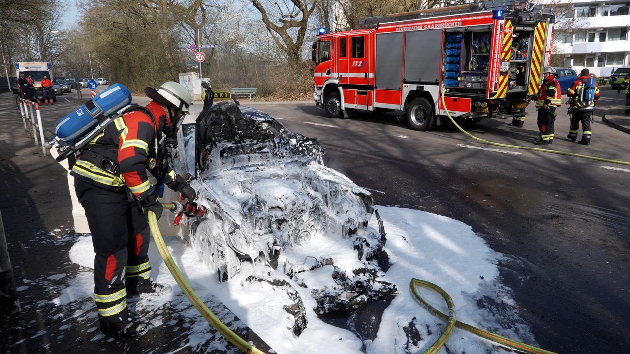 Saarbrücken – (Von unserem Reporter Thorsten Kremers – Bildergalerie am Ende des Beitrags) Ein Taxi ist am Montagvormittag (9. März 2026) auf dem Saarbrücker Winterberg in Brand geraten und vollständig ausgebrannt. Der Vorfall ereignete sich gegen 10.30 Uhr in der Theodor-Heuss-Straße in der Nähe der Bushaltestelle „Oscar-Gross-Weg“. Nach ersten Informationen brach das Feuer im Motorraum des Fahrzeugs aus.