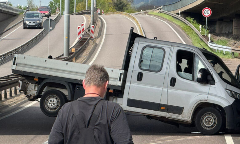 Skurriler Unfall auf der A620 – Transporter steckt in Baustelle fest