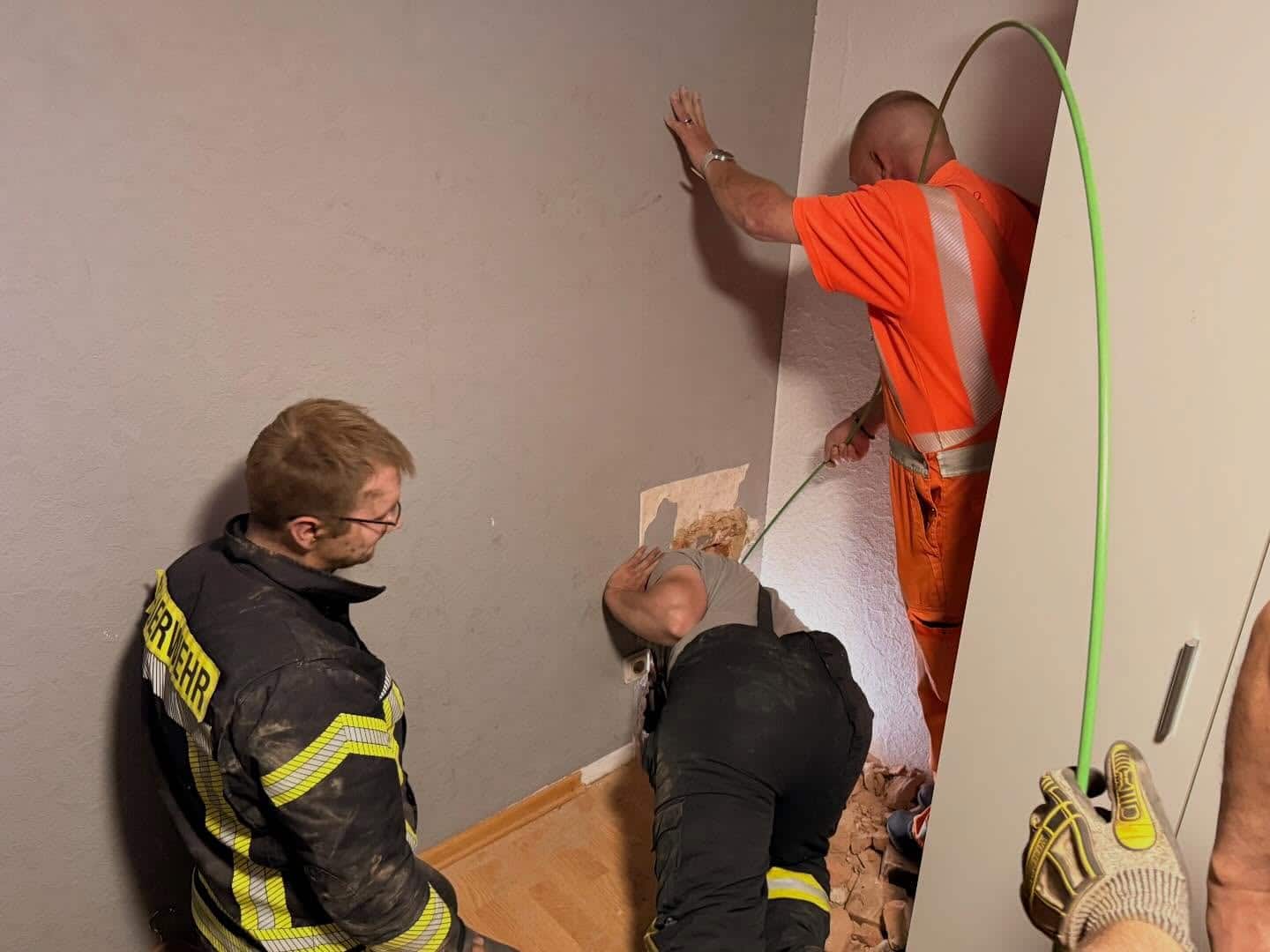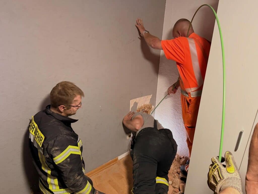 Zur Lokalisierung des Tieres wurde technische Unterstützung hinzugezogen: Mit einem speziellen Kamerasystem konnte die Position der Katze im Schornstein ermittelt werden. Anschließend begannen die Feuerwehrleute, den Kamin gezielt zu öffnen. Aufgrund baulicher Gegebenheiten musste die Rettung aus einem darüberliegenden Geschoss heraus erfolgen, da ein direkter Zugang im unteren Bereich nicht möglich war.