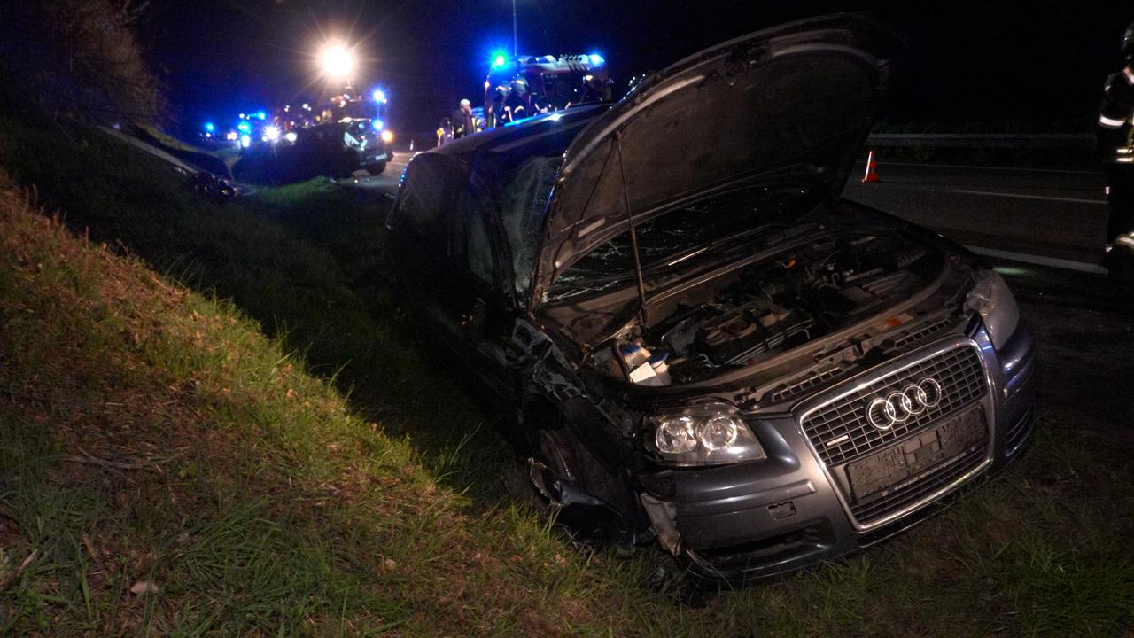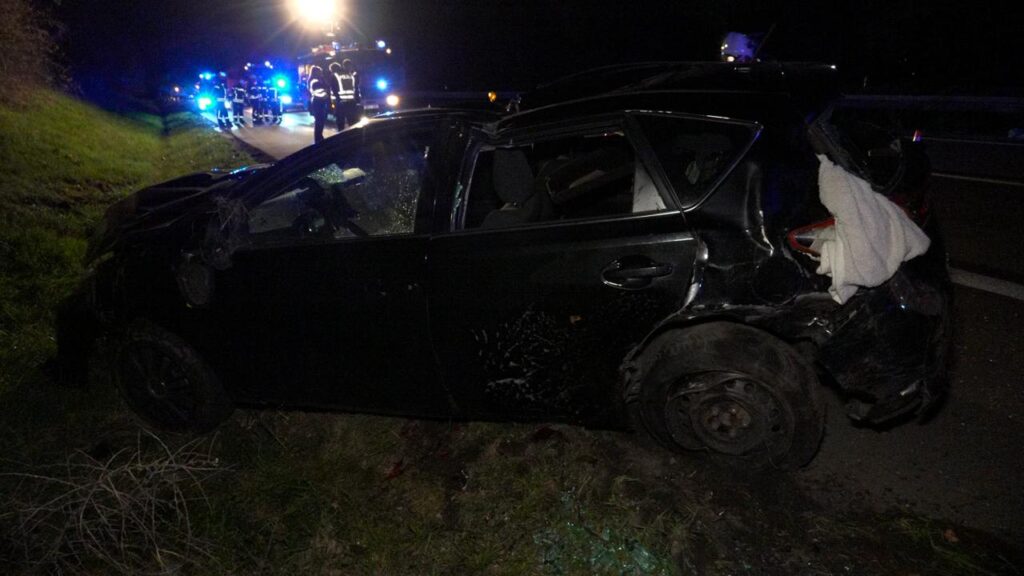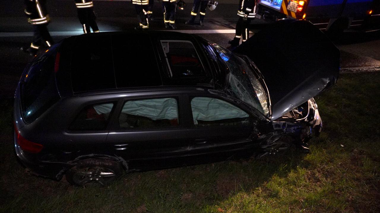 Heusweiler – (Von unserem Reporter Thorsten Kremers – Bildergalerie am Ende des Beitrags) Am Mittwochabend (1. April 2026) ist es gegen 20:15 Uhr auf der A8 in Fahrtrichtung Luxemburg zwischen dem Kreuz Saarbrücken und Heusweiler zu einem Verkehrsunfall gekommen. Ein Audi kollidierte aus bislang ungeklärter Ursache mit einem Toyota Auris. Durch den Zusammenstoß verloren beide Fahrzeuge die Kontrolle und kamen schließlich im Straßengraben zum Stillstand.