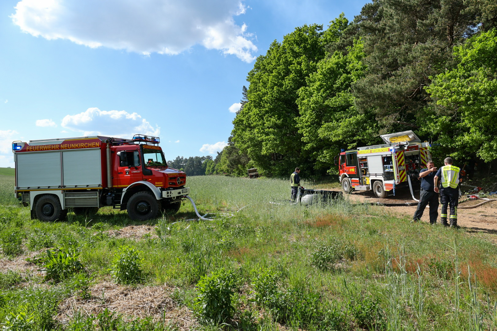 An gleich drei Stellen brannte es am Montagnachmittag, 12. Mai im Wald auf dem Kleinen Hirschberg beim Neunkircher Stadtteil Kohlhof. Die Ausbreitung des Waldbrandes auf dem Höhenzug konnte die Freiwillige Feuerwehr Neunkirchen mit Unterstützung weiterer Feuerwehren aus dem Landkreis Neunkirchen und dem benachbarten Saarpfalz-Kreis noch am Nachmittag stoppen. Die aufwändigen und kräftezehrenden Nachlöscharbeiten zogen sich jedoch bis zur Abenddämmerung hin.